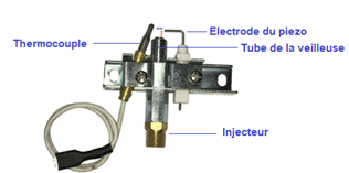 1 – L’étincelle est-elle présente dès le début ? Faites un test ! Fermez la bouteille de gaz puis appuyez uniquement sur le bouton piezo. Vérifiez la présence de l’étincelle qui se trouve en bas du chauffage, entre le tube de la veilleuse et l’électrode du piezo. Si l’étincelle est présente mais qu’elle disparaît lors de la procédure d’allumage, le problème provient de la bouteille.